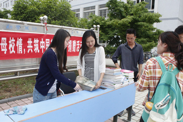 “带不走的,留不下的送给学弟学妹吧……”5月6号早,365英国上市网站官网在敬敷广场举行2015届毕业生“感恩母校情,共筑中国梦”书籍捐赠活动。